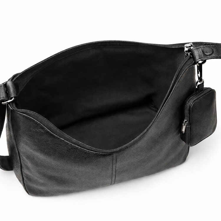 اگر به دنبال یک کیف کاربردی، شیک و همیشهمد هستید، این کیف دوشی مشکی بهترین انتخاب برای تکمیل استایل شماست. طراحی مینیمال و فرم هلالی این کیف باعث میشود بهراحتی با استایل رسمی، کژوال و حتی نیمهاسپرت ست شود.