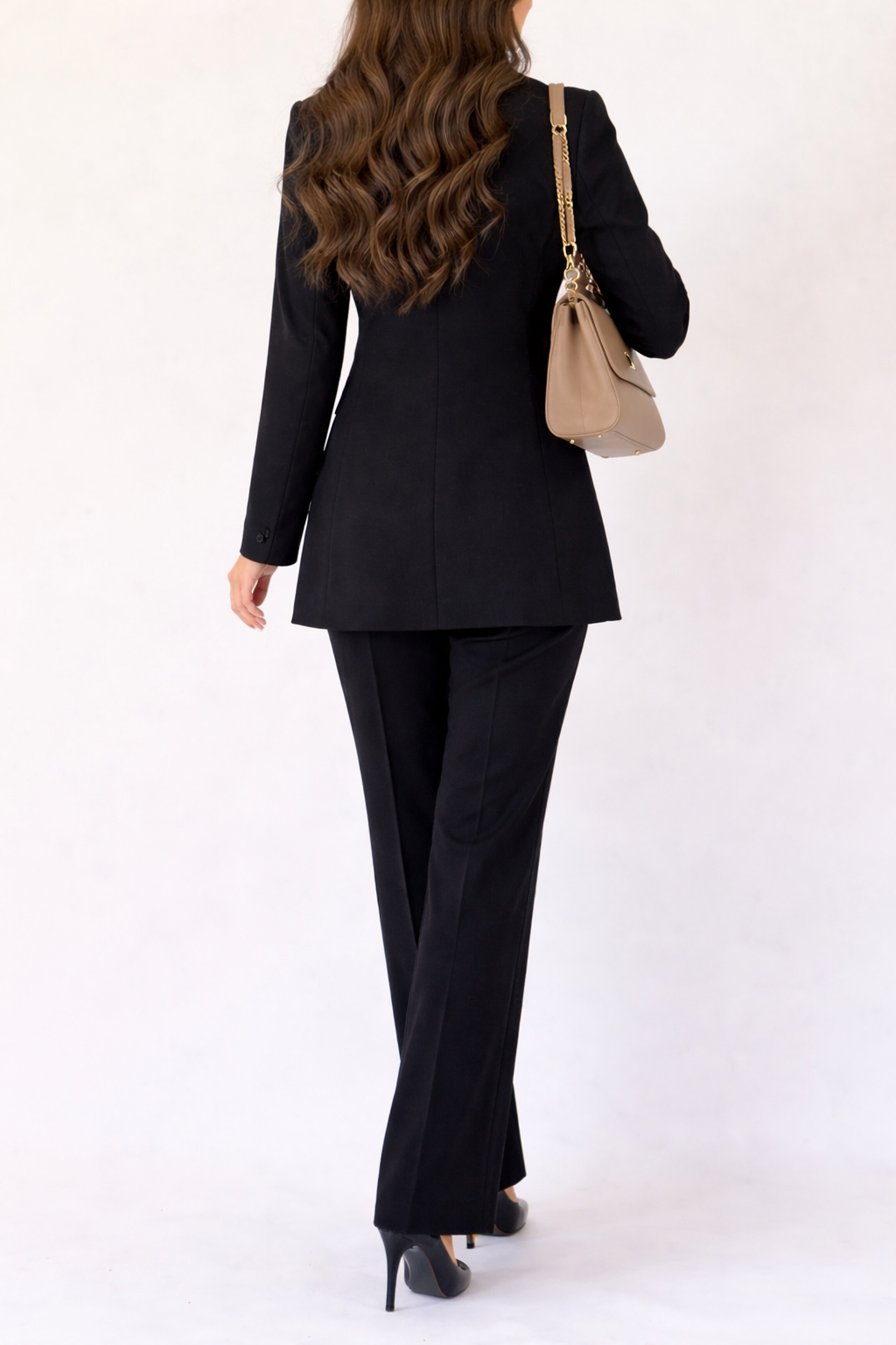این کت و شلوار را میتوانید با کفش پاشنهدار برای استایل رسمی، یا با کیف و اکسسوری متفاوت برای یک ظاهر مدرنتر ست کنید.